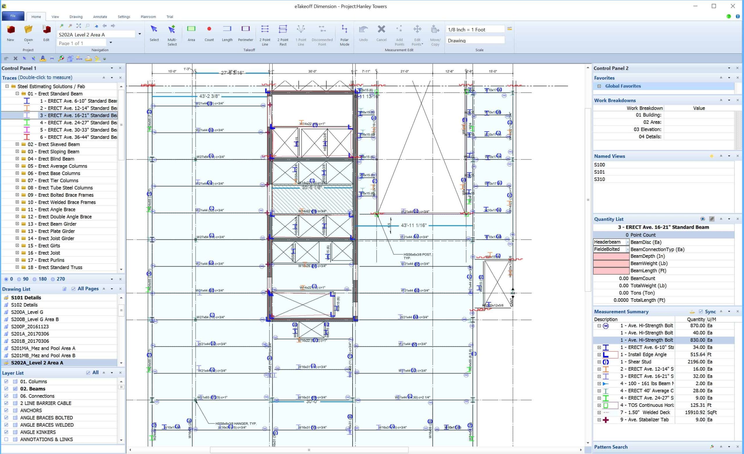 Since having the Steel Erection Bid Wizard on the market since 2012 I have talked to many fabricator/erectors over the years and have heard, over and over how they wish they could perform a fabrication takeoff and an erection takeoff at the same time. It was a hard nut to crack but with the ability of eTakeoff and a very knowledgeable fabricators help, that nut has now been cracked!